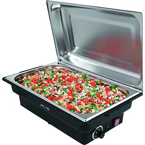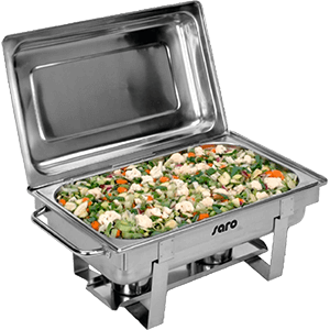 Warmhalten von Speisen mit Brennpaste oder elektrisch. Die ideale Lösung für Buffets, Kantine und bei Essen zum Mitnehmen.
