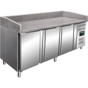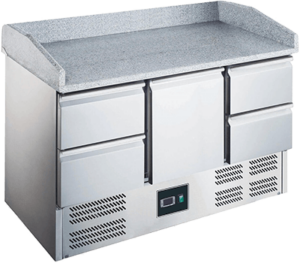 Hier finden Sie Auswahlkriterien, weitere Merkmale und Produkttypen für einen klassischen Pizza-Kühltisch mit Arbeitsplatte aus Edelstahl.