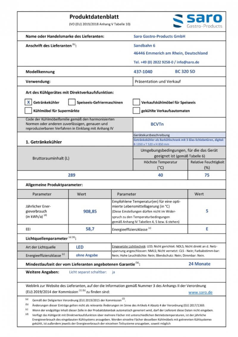 • SARO Tiefkühlschrank mit Glastür, Modell EGN 650 BTG
