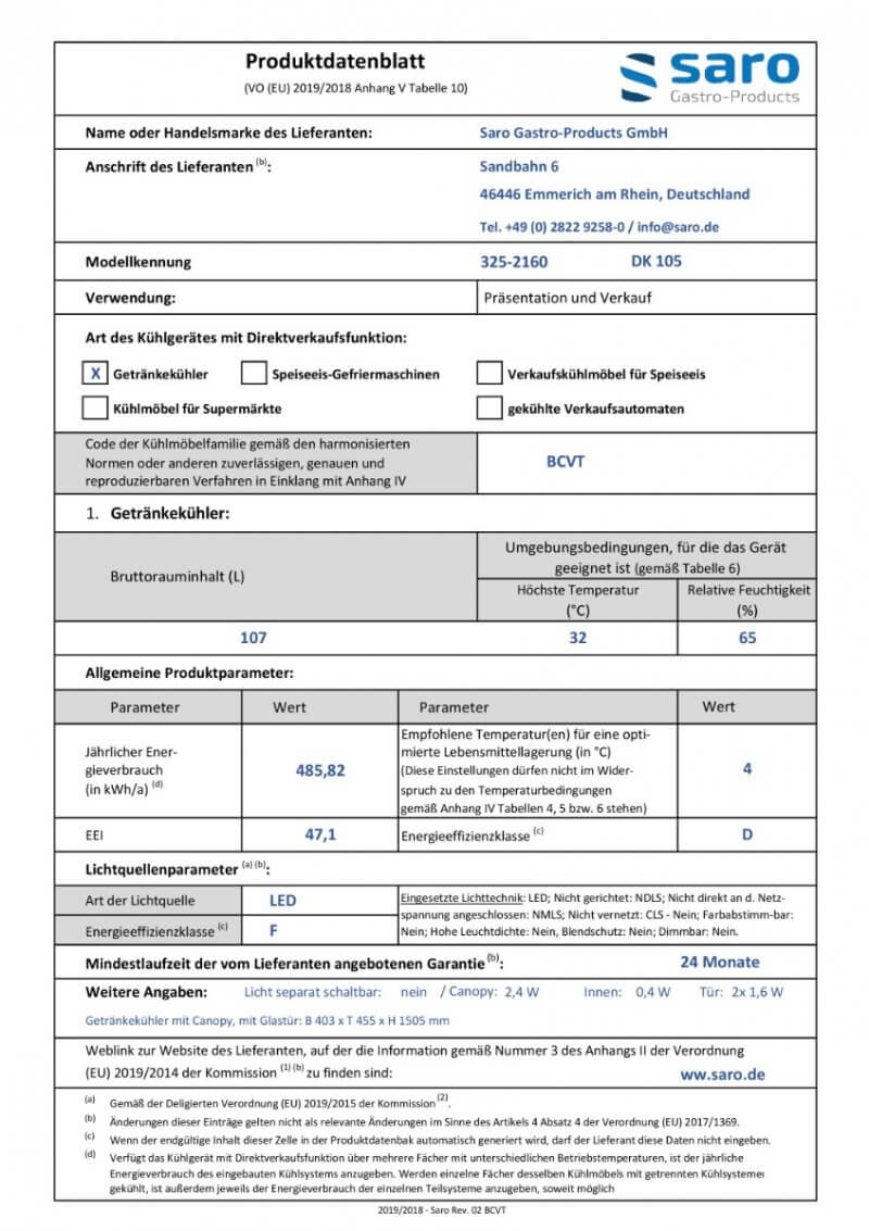 • SARO Getränkekühlschrank mit Werbetafel - schmal, Modell DK 105