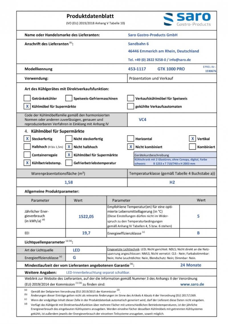 SARO Kühlschrank mit 2 Glastüren. Modell GTK 1000 PRO - schwarz