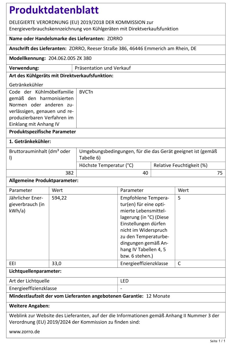 1. ZKB 360 ZORRO Flaschenkühlschrank für Getränke Privat und Gastronomie