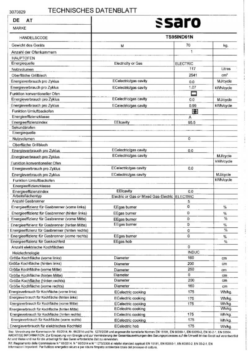 1. SARO Induktionsherd +Elektrobackofen Modell TS95IND61X silber