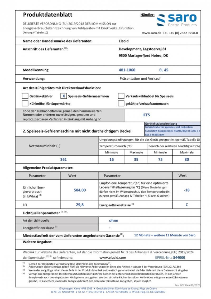 SARO Speiseeis-/Tiefkühltruhe Modell EL 45