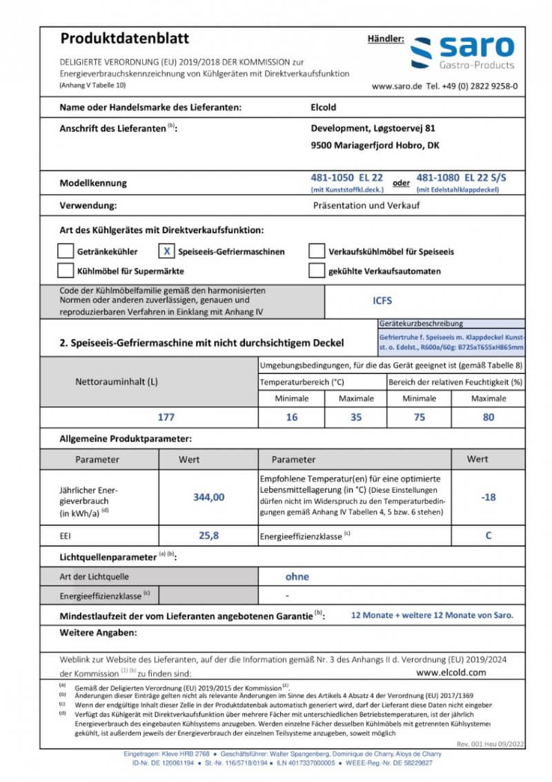 SARO Speiseeis-/Tiefkühltruhe Modell EL 22
