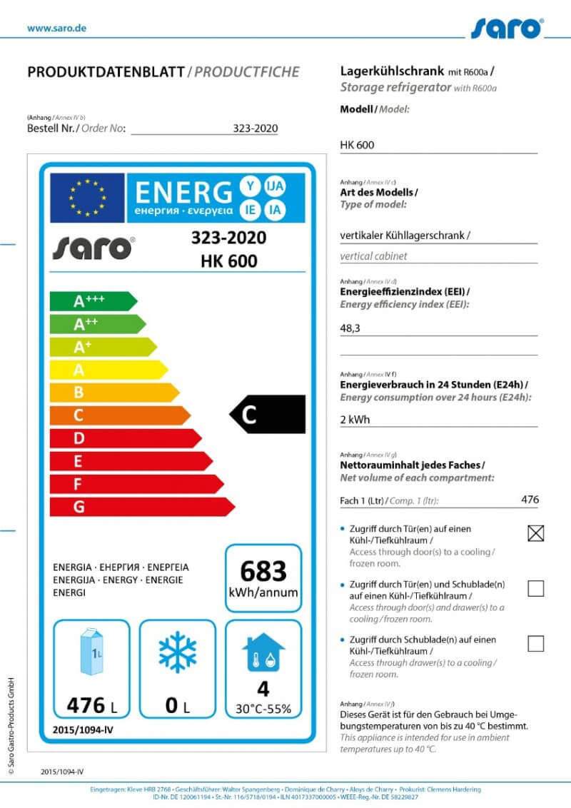 SARO Lagerkühlschrank - Weiß- Modell HK 600