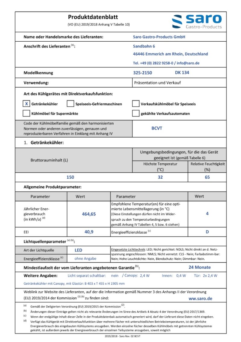 SARO Weinkühlschrank mit Glastür, Modell CV 430 PV