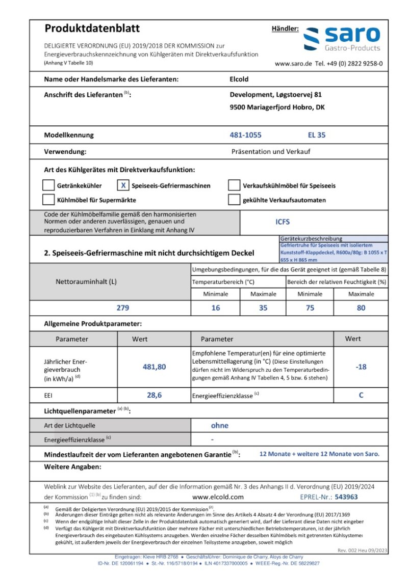 SARO Speiseeis-/Tiefkühltruhe Modell EL 35