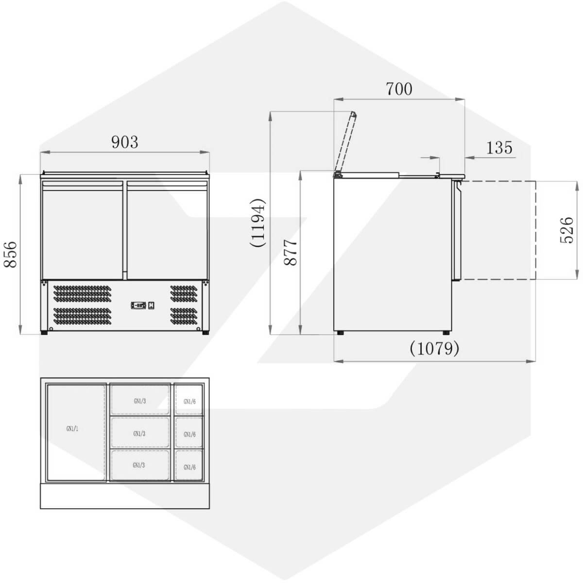 ZORRO Saladette ZS 900 | 2 Türen | 900x700mm | für 2x 1/1 + 2x 1/4 GN