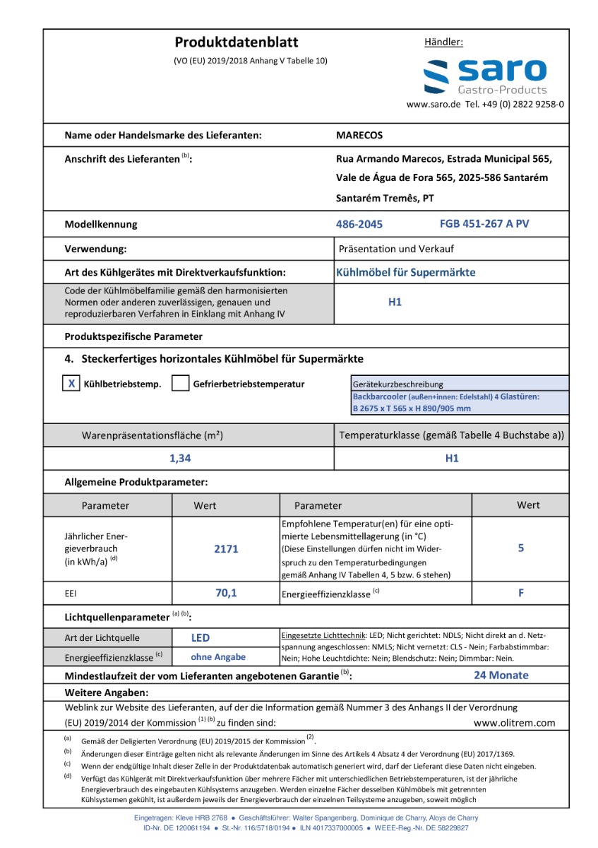 • Energieeffizienzklasse: F (Spektrum A bis G)