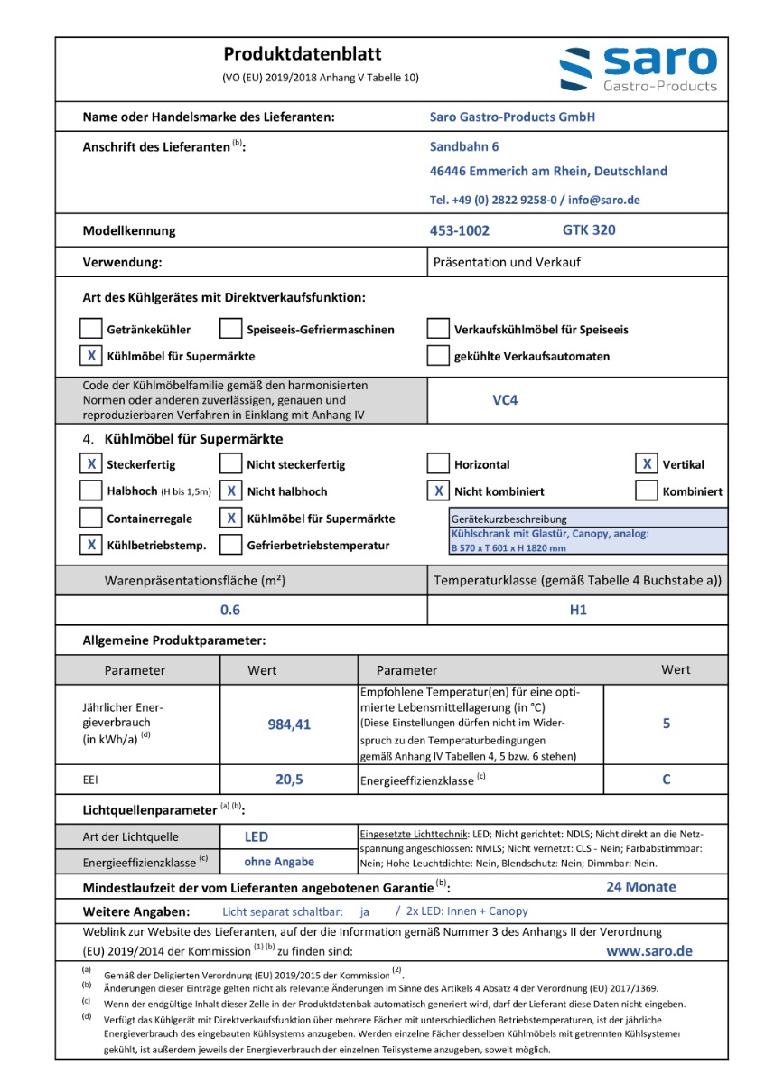 SARO Kühlschrank mit Glastür und Werbetafel, Modell GTK 320