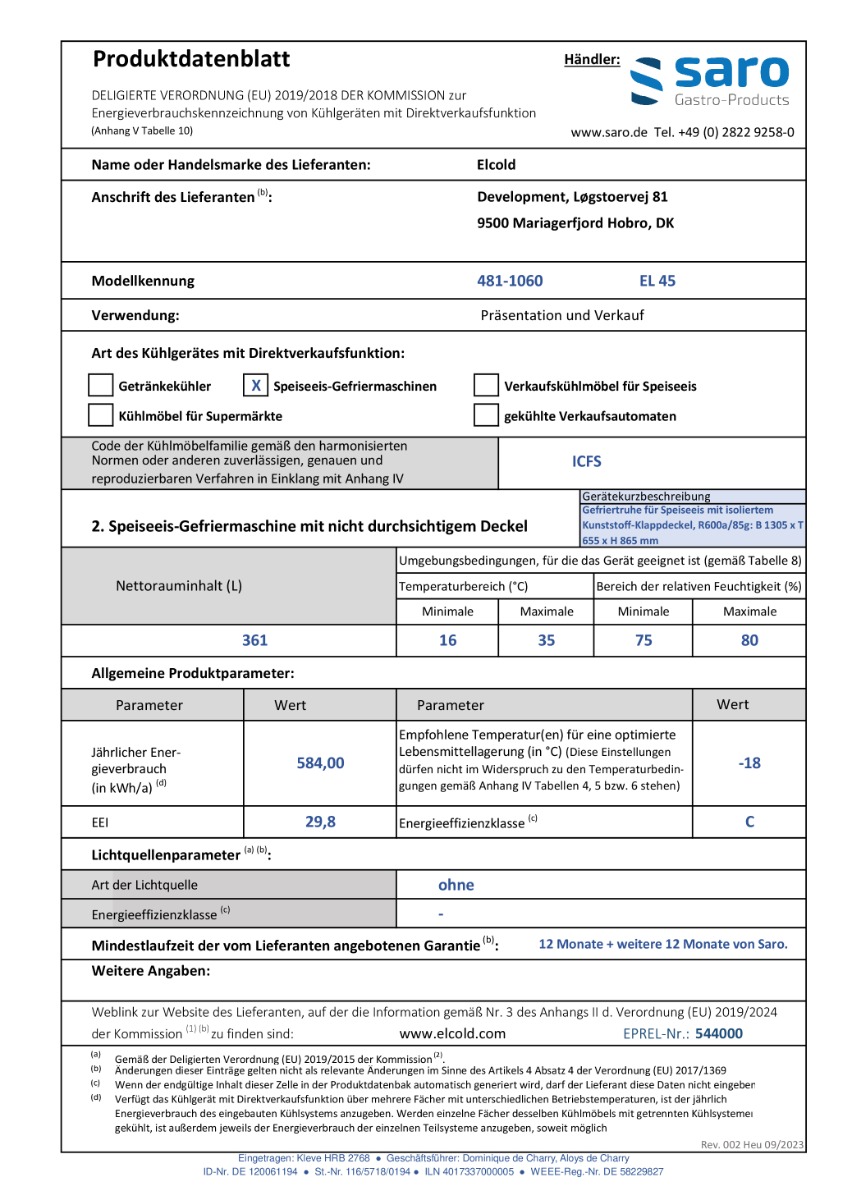 SARO Speiseeis-/Tiefkühltruhe Modell EL 45 – Effiziente Tiefkühlung für professionelle Anwendungen