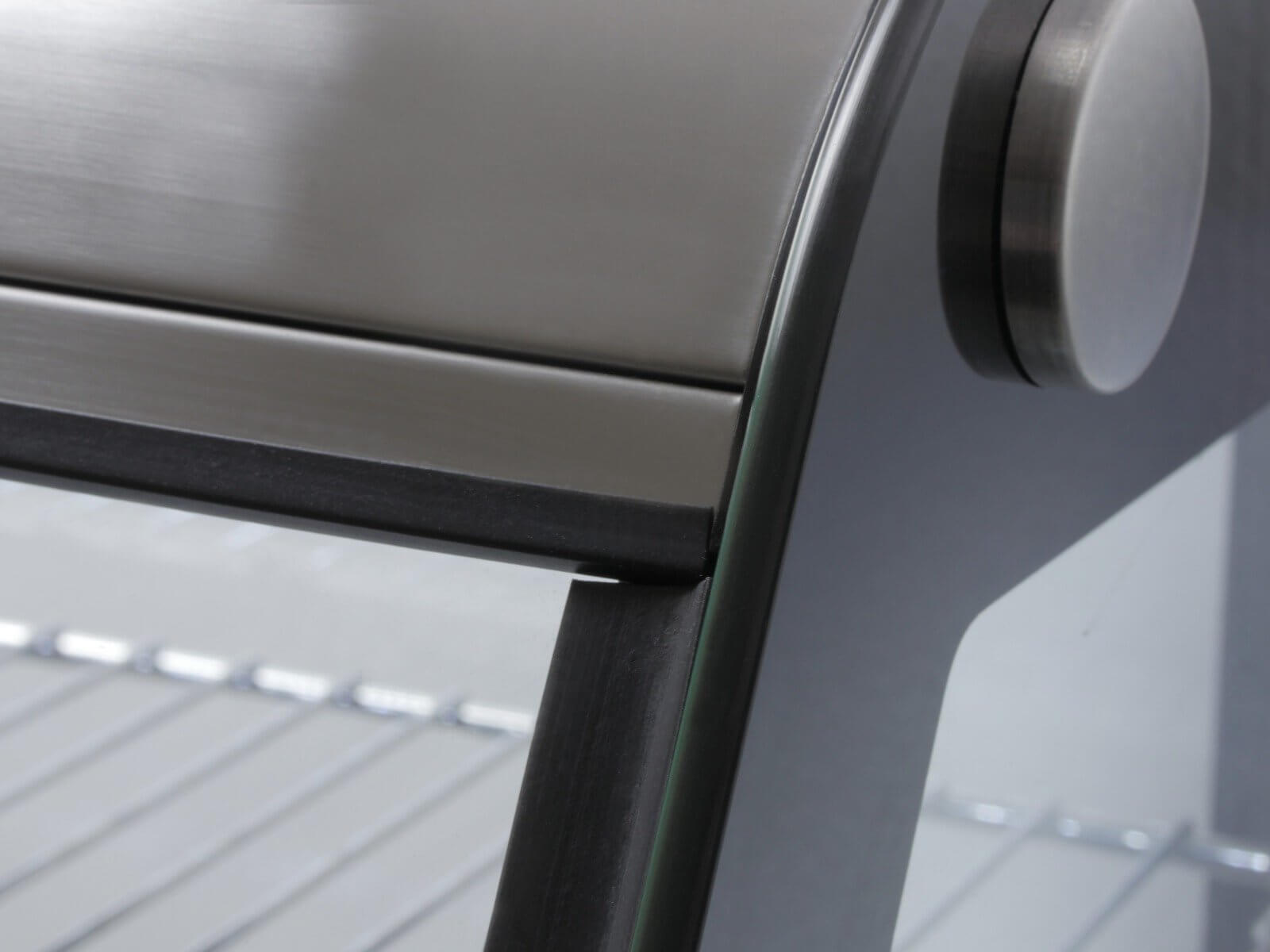 Das hochwertig verarbeitete Auftisch Gerät überzeugt mit einem hochwertigen Edelstahlgehäuse, sowie eine gebogenen Glasfront. Der Zugriff auf den Geräteinnenraum der Kühlvitrine erfolgt über die selbstschließenden Schiebetüren.