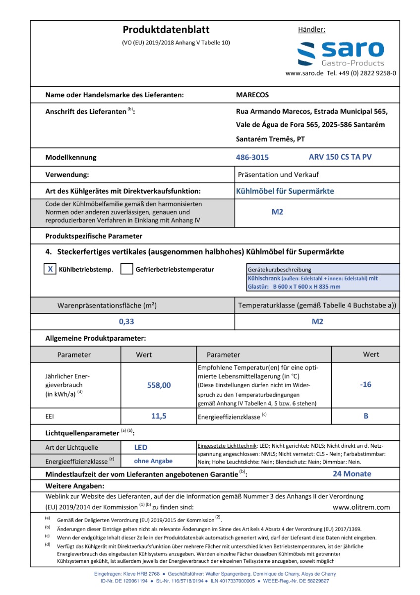 SARO Kühlschrank mit Glastür, Modell ARV 150 CS TA PV