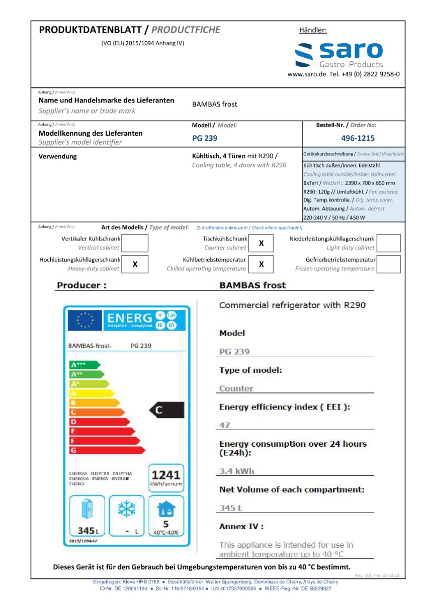 Alle Kühlgeräte sind nachweisbar von einem fachkundigen Kälte-Klimatechniker in Betrieb zu nehmen.