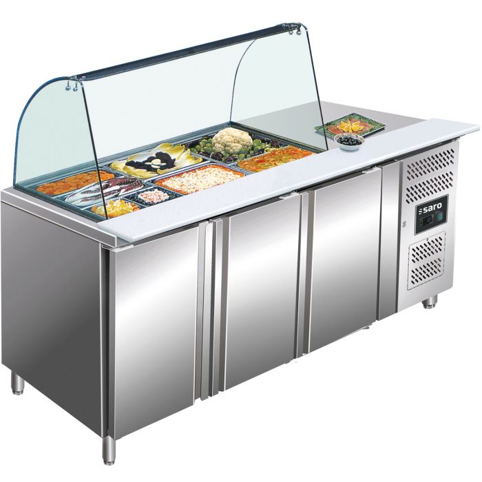 Der Kühltisch GN 3100 TNS eignet sich ideal für Imbissbetriebe und Küchen mit frischer Zubereitung an der Verkaufstheke. Das praktische Polyethylen Schneidebrett ermöglicht ein schnelles Belegen bzw. Zuschneiden von Speisen vor Ort. Zusätzlich verfügt der Kühltisch über eine Ablagefläche sowie 3 höhenverstellbaren Roste im Innenraum.