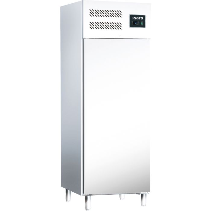 Der Tiefühlschrank GN 600 BTB mit einbrennlackierten, weißen Gehäuse und Leichtmetall Innenraum verfügt über knapp 540 Liter Fassungsvolumen. Durch die drei höhenverstellbaren Roste, lassen sich beliebig große Tiefkühlwaren problemlos Lagern. Der Leistungsstarke Kompressor und die 60mm starke Isolierung ermöglichen einen energieeffizienten Einsatz des Gewerbetiefkühlschranks in Restaurants, Imbissbetrieben oder Kantinenküchen.