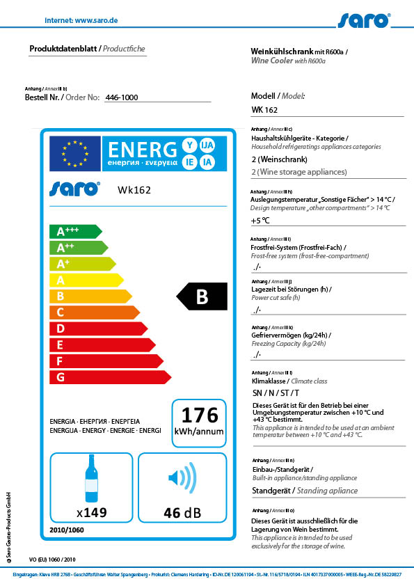 Der Weinkühlschramk WKS 162 im schlichten schwarz verfügt über acht in der höhe verstellbaren und herausziehbaren Ablageflächen für bis zu 162 handelsüblichen Weinflaschen. Über das integrierte Touch Panel lässt sich der Weinklimaschrank auf die gewünschte Temperatur im Bereich von +5 - +20 °C problemlos einstellen. Die auf zwei höhen integrierten Umluftventilatoren sorgen dabei für eine konstante Temperatur im gesamten Innenraum des Weinkühlschrankes.