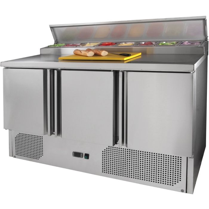 Die Belegstation ZPS 300 ist mit 3 Türen und einem fest integrierten Edelstahleinsatz für GN-Behälter ausgestattet. Aufgrund der Öffnung zum Kühlraum, werden diese indirekt mit gekühlt. Die hochwertige Edelstahl Arbeitsfläche bietet ausreichend Platz zum Belegen oder Zubereiten der Speisen. Die statische Kühlung wird durch einen zusätzlichen Umluftventilator unterstützt und sorgt für eine gute Kälteverteilung im Gerät.