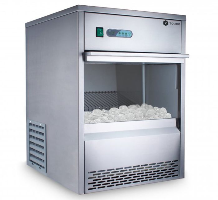 Der für den Dauereinsatz geeignete Eiswürfelbereiter ZEB 25 ECO wird inklusive Anschlussmaterial und Eisschaufel geliefert. Der Anschluss des Gerätes erfolgt via Plug & Play.