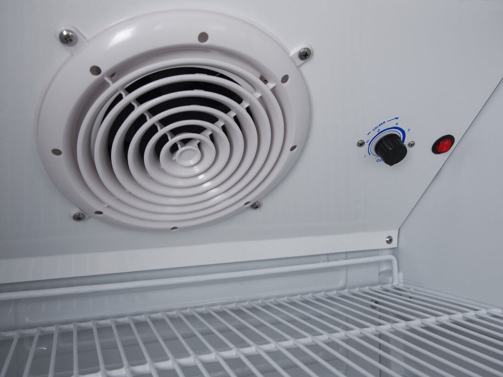 Der Flaschenkühler für Getränke ist mit einer zusätzlichen 10 Watt starken LED-Leiste ausgestattet. Diese sorgt für gut lesbare Preisschilder, welche direkt an die mitgelieferten Roste befestigt werden können.