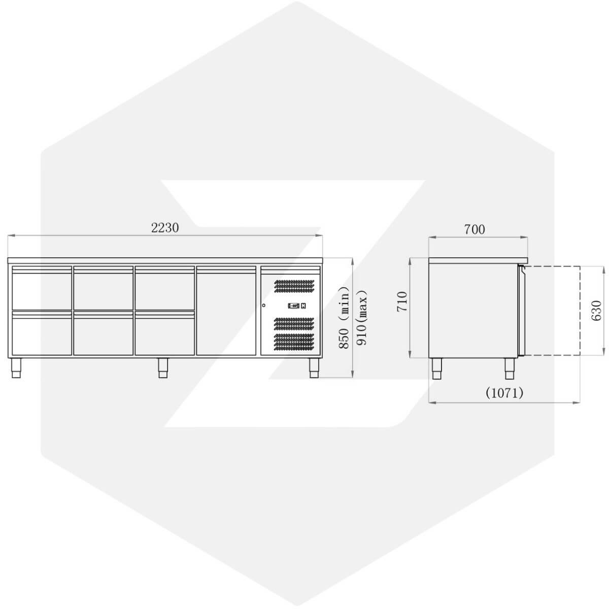 ZORRO Kühltisch ZGN 4160 TN | 1 Tür / 6 Schubladen | 2230x700mm | 1/1 GN