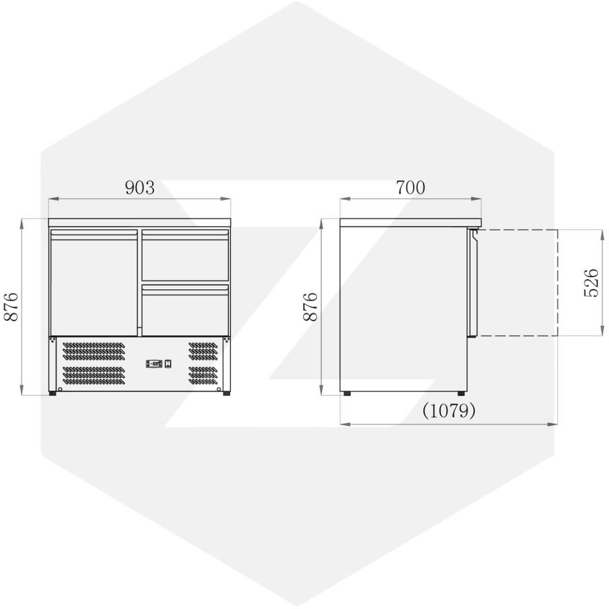 Der Kühltisch ZS 901 2D ist neben einer Tür mit einlege Rost mit 2 gekühlten Schubladen ausgestattet, welche sich ideal mit 1/3 GN-Behältern kombinieren lassen. Der Kühltisch eignet sich sowohl in Restaurant Küchen, als auch im Thekenbereich. Die Gummidichtungen in den Türen lassen sich zur vereinfachten Reinigung einfach entnehmen.