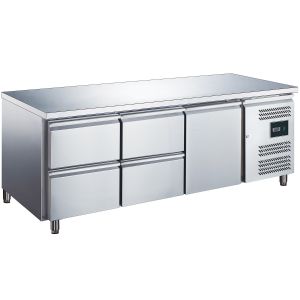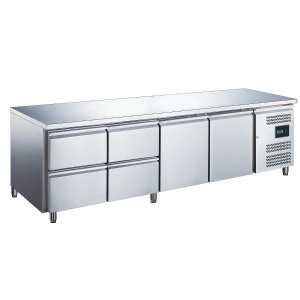 Der Kühltisch ZS 903 6D ist mit sechs Schubladen ausgestattet. Diese ermöglichen ein sauberes Trennen der zu kühlenden Ware. Die integrierte Edelstahl Arbeitsfläche ermöglicht zudem das Zubereiten von Speisen, ohne zusätzliche Arbeitsplatte. Der Kühltisch findet seinen Einsatz im Thekenbereich sowie in der Gastro Küche.