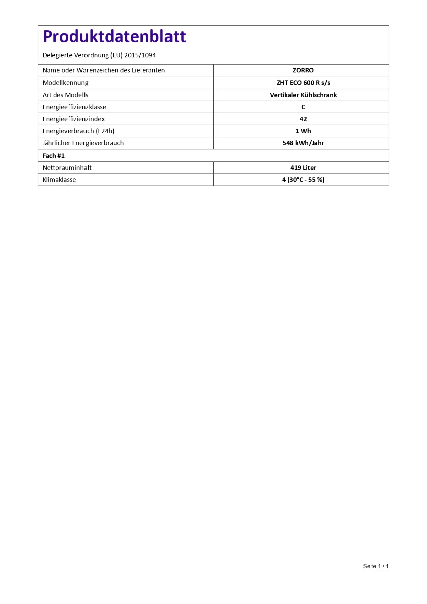 Der Lagerkühlschrank ZHT ECO 600 R s/s ist mit einem Edelstahlkorpus ausgestattet. Über das digitale Thermostat lässt sich der gewünschte Temperaturbereich einstellen und überwachen. Das Gerät eignet sich zur Lagerhaltung von Lebensmitteln und Getränken in allen Bereichen der Gastronomie. Die ca. 600 Liter Volumen sorgen dabei für ausreichend Lagerfläche.