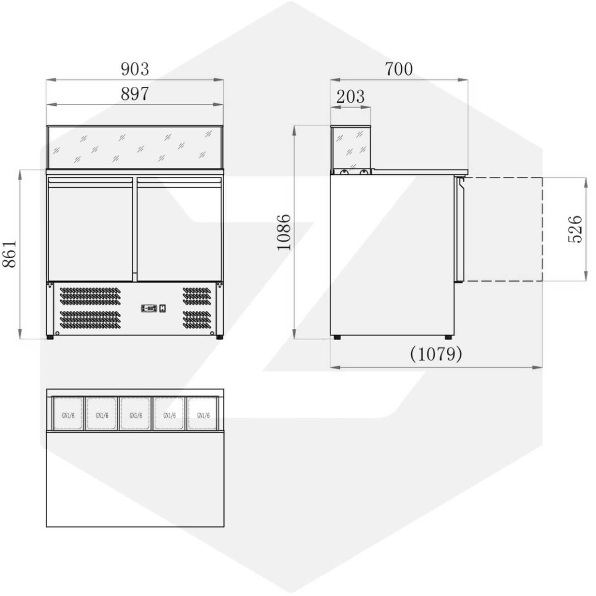 ZORRO Pizzatisch ZPS 900 G | 2 Türen | Glasaufsatz | 900x700mm